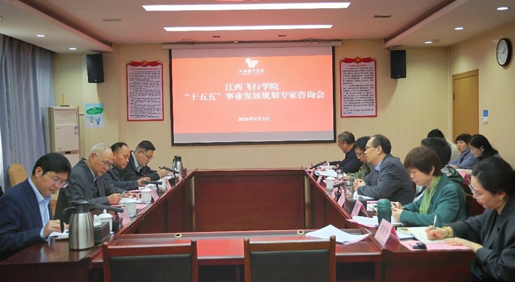为科学谋划学校未来五年发展蓝图,高质量推进十五五事业发展规划编制工作,2026 4 3 日,我校在行政楼四楼会议室召开江西飞行学院十五五事业发展规划咨询会。会议特邀江西省政府教育咨询委员、省政府教育督导王锋,江西农业大学教务处处长、博士、博士生导师吴国平,南昌航空大学动力与能源学院院长、博士生导师丁相玉,东华理工大学科研院院长、博士、硕士生导师严兆彬四位高水平专家莅临指导。学校党委委员、副校长郭军华主持会议,各相关职能部门主要负责人、规划编制专班全体成员参加会议。